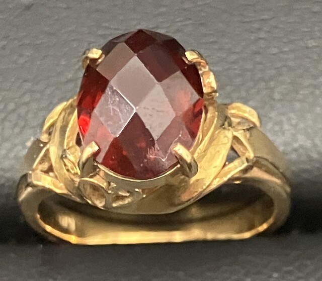 先日お越しいただいたお客様からガーネットのあしらわれた金の指輪をお譲りいただきました!